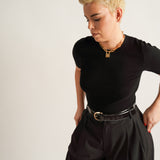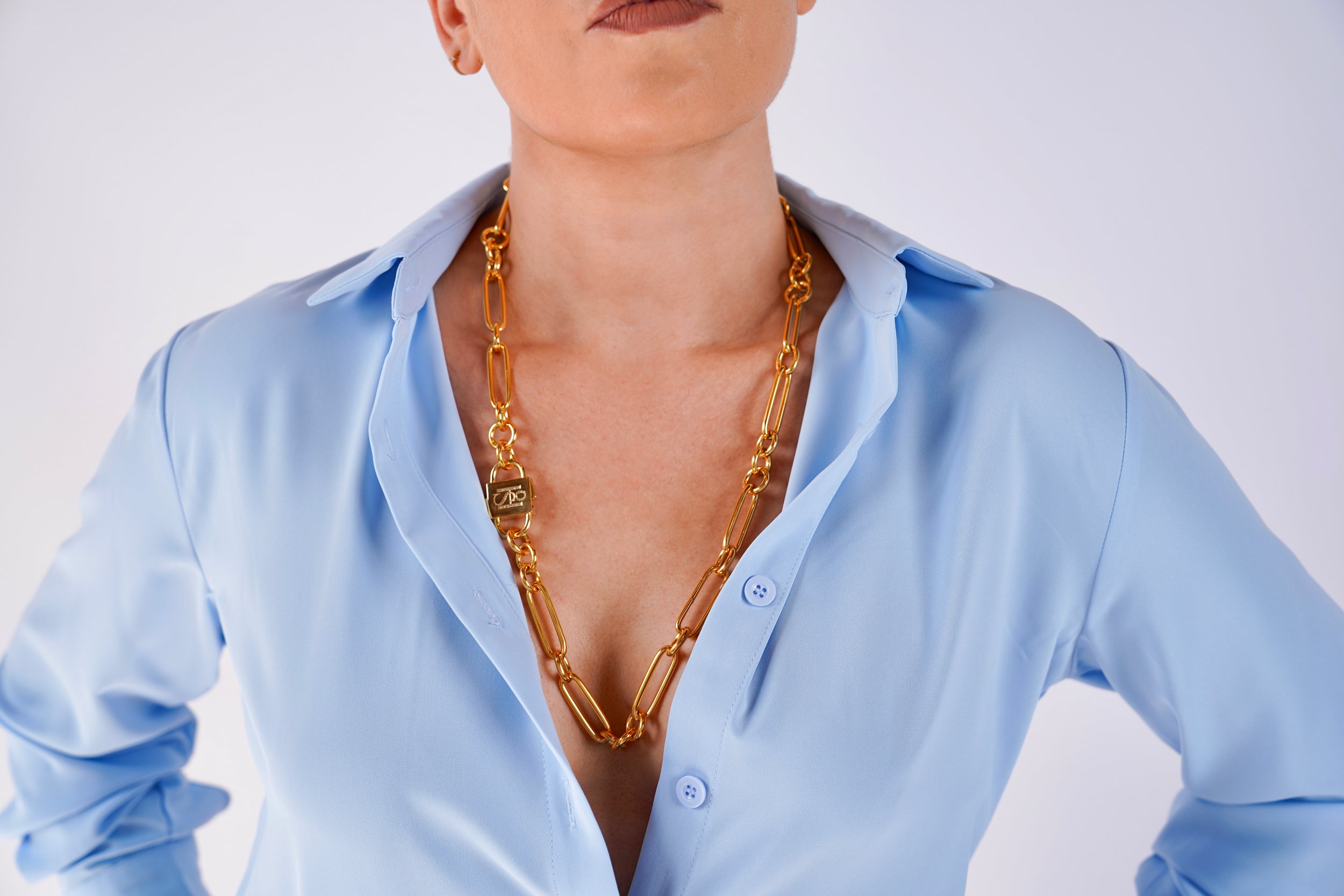 The two spring clasps not only serve to connect the chains but also allow you to attach charms between them, giving each chain a personalized touch. The chain is gold-filled with 1 micron over 925 silver.