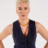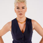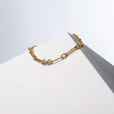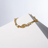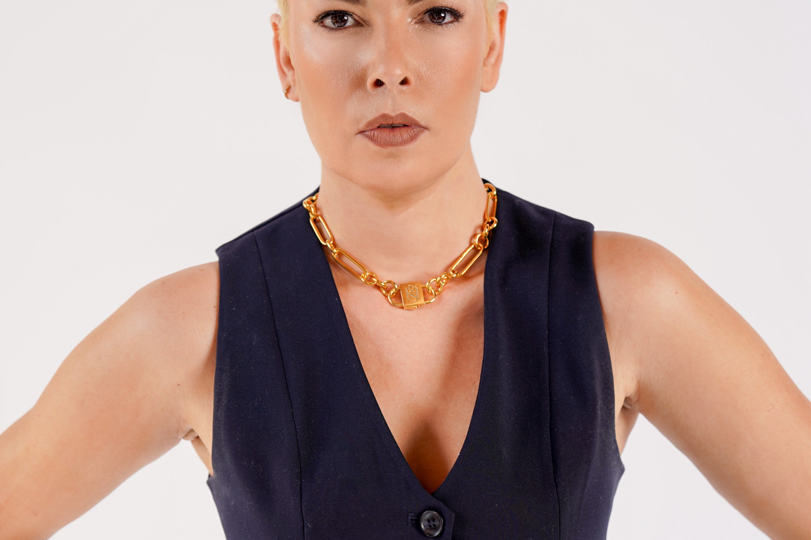 Our choker-sized chain necklace design consists of two 16 cm fixed chains, a three-ring connector, and one spring clasp. This allows you to effortlessly transform your total 16” chain necklace into two bracelets. The spring clasp not only serves to connect the chains but also allows you to attach charms between them, giving each chain a personalized touch. The chain is gold-filled with 1 micron over 925 silver.