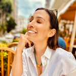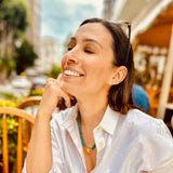 Bébé Turquoise necklace is intricately crafted using small, genuine Turquoise and the traditional silk knotting technique. This practice involves tying precise knots between each bead, which not only enhances the necklace's elegance but also boosts its durability. Despite requiring skill and patience, this method delivers high-quality results that surpass those of conventional lining techniques.