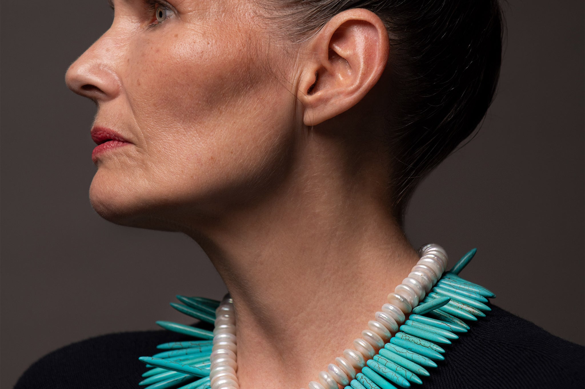 Cleopatra consists of two different necklaces; by buying this piece, you will have a Rondelle Pearl necklace and a Turquoise Howlite necklace to play with their combination.