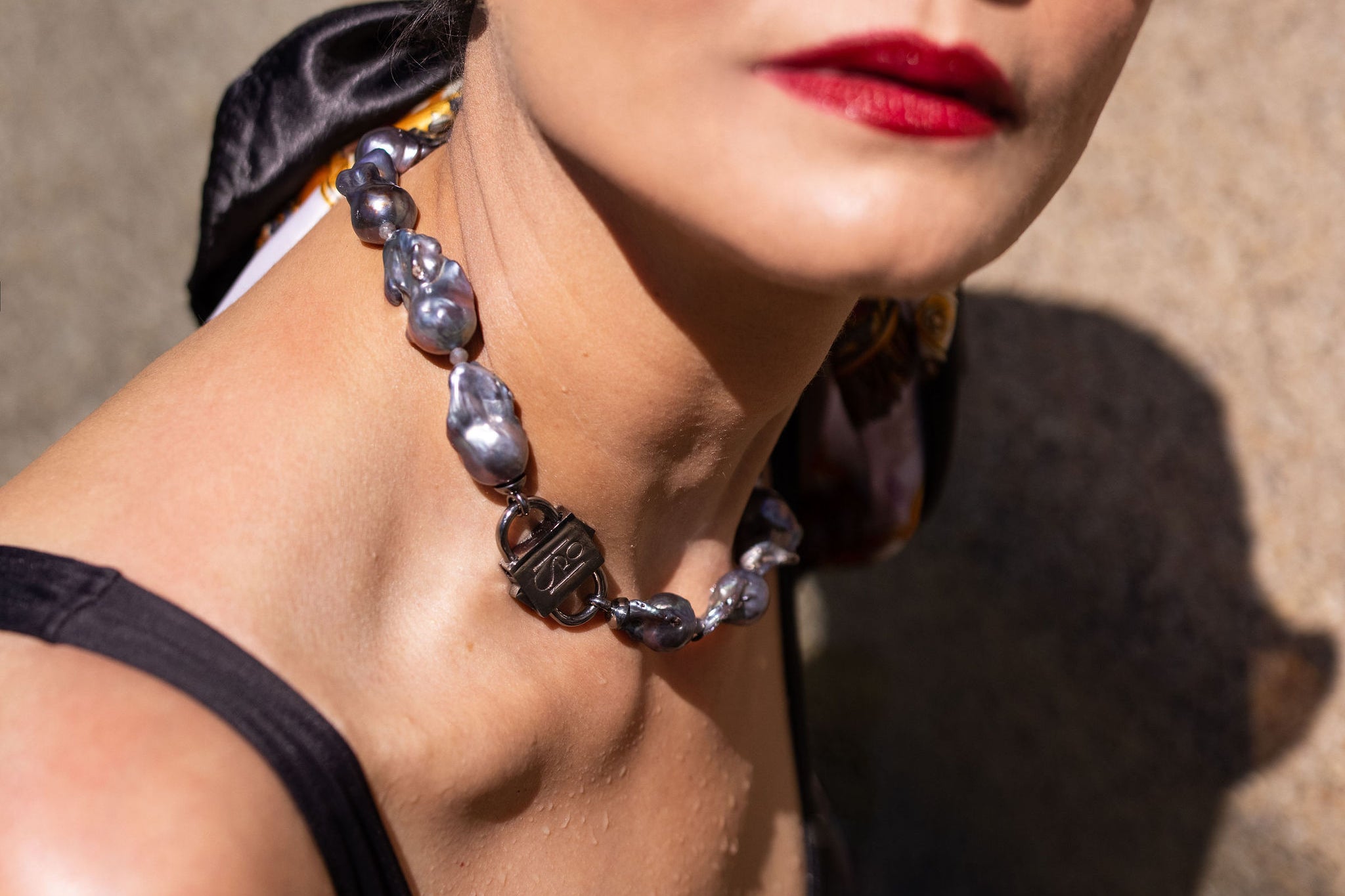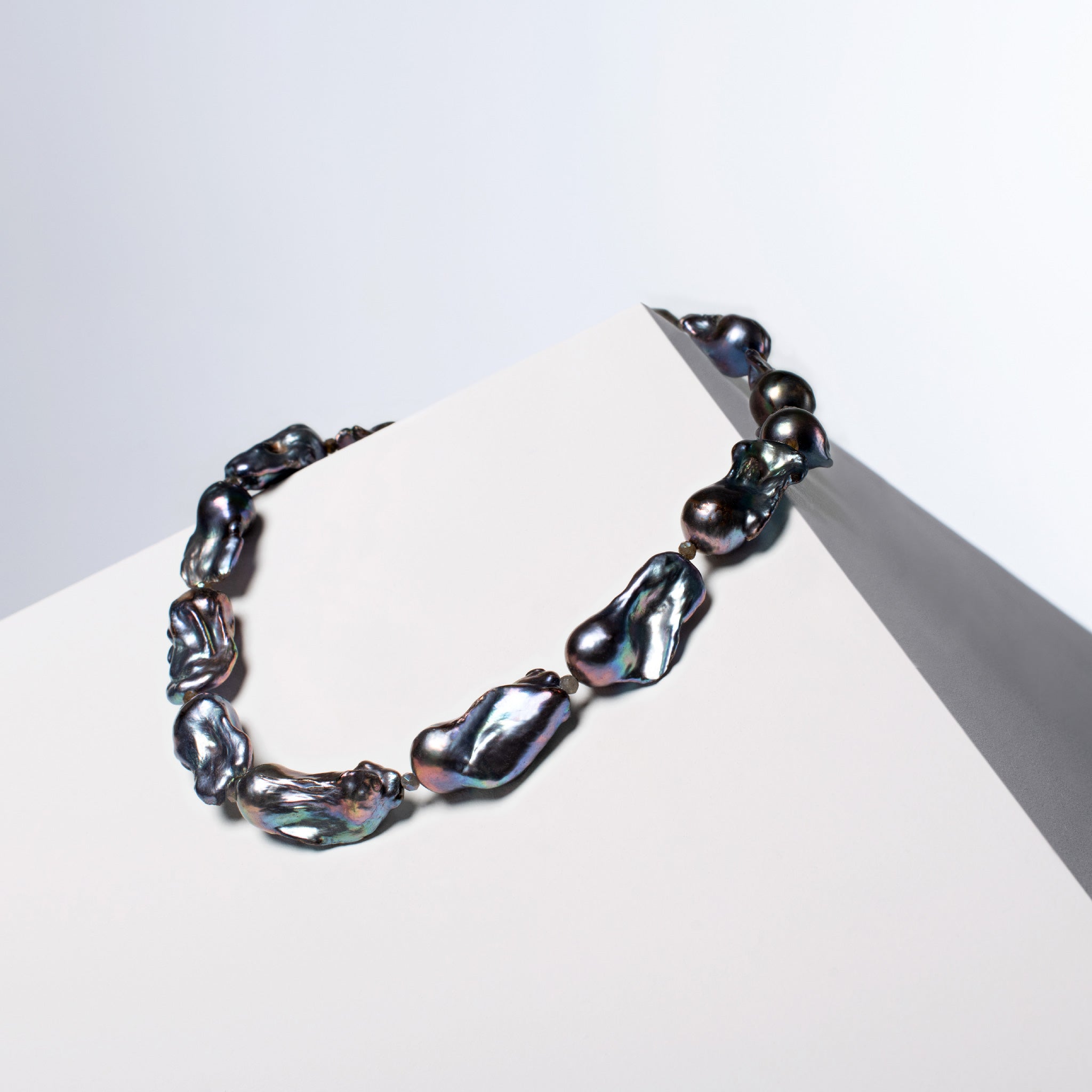 Rare find, highest quality, natural, black baroque pearls with the Black HoS lock. Just like Cosmos, eternal and breath-taking.