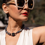 Cosmos is a combination of high-quality black baroque pearls and colorful precious gemstones among them. To achieve its purity, we source only the top-quality baroque pearls in the market.