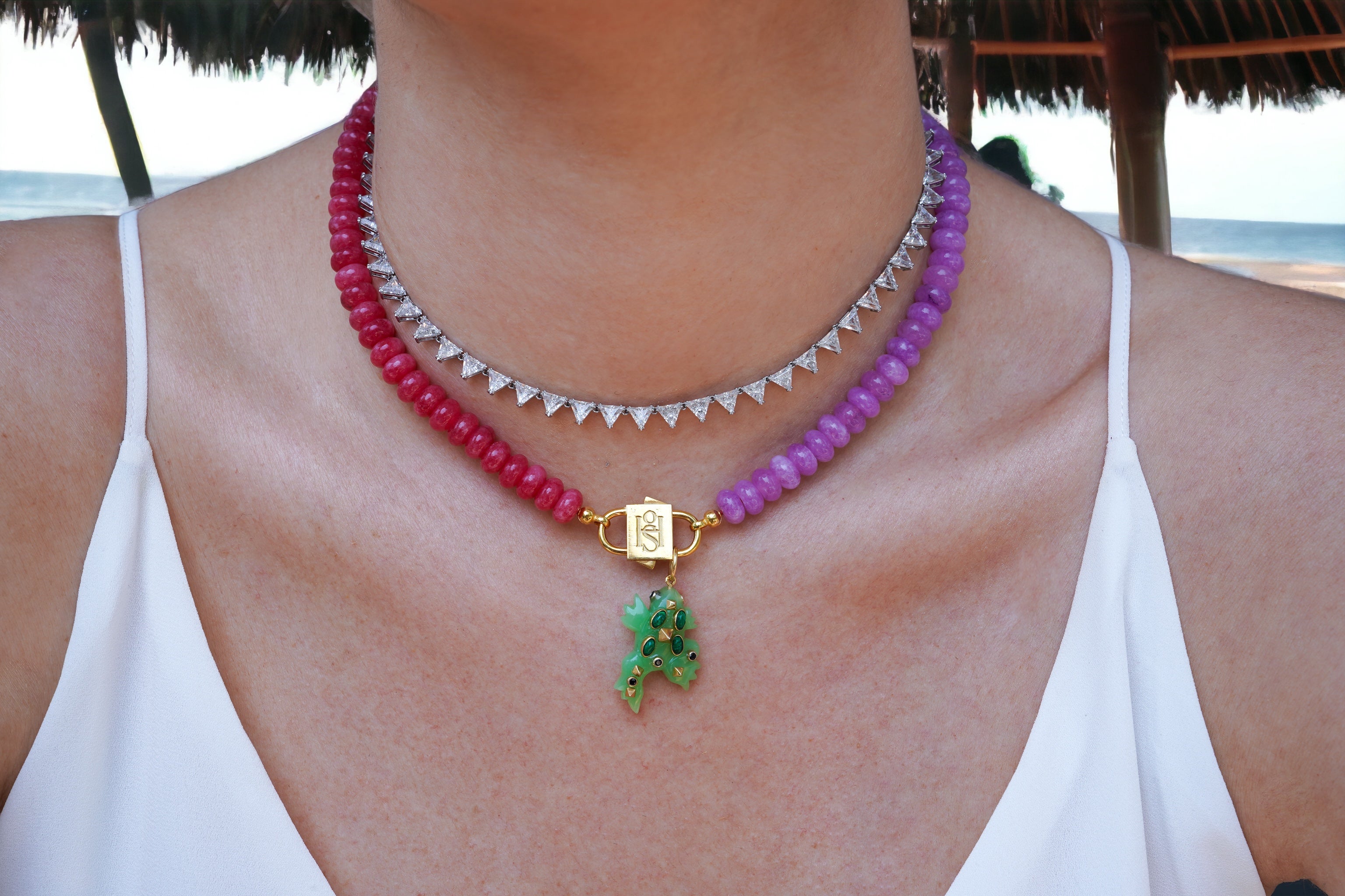 So, ladies, let's toast to the season with this vibrant accessory. After all, summer is a state of mind, and this necklace? It's your passport.
