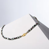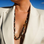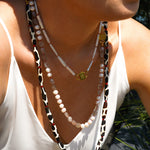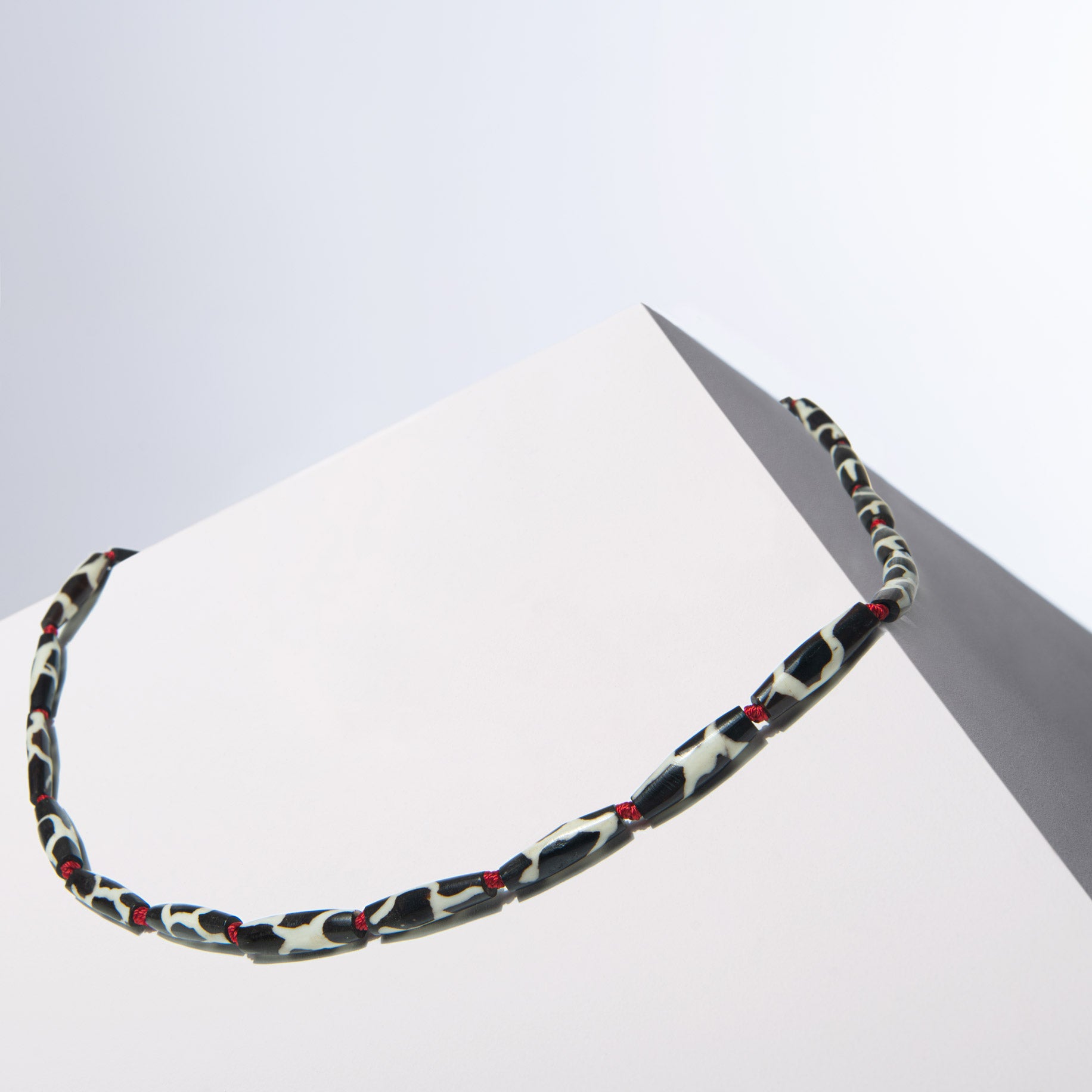 Welcome to the world of 'Iwi', a true representation of global artistry. Named after the Hawaiian word for 'bone', this necklace is a tribute to the rich cultures from which it was born. Each bone piece is carefully cut and assembled by skilled Kenyan artisans, creating a unique mosaic of textures and forms. The necklace is then finished with vibrant red silk knots, hand-tied in the famed Grand Bazaar. With every wear, 'Iwi' tells a story of unity, diversity, and the shared beauty of our world. Embrace the journey.