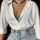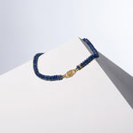 Long live Lazuli! Meet the newest gem in our Bebe Collection and the inaugural Bebe model of our Ancient Egypt series. The epitome of elegance, it flaunts dark navy hues, earthy whites, and golden sparkles. Welcome the chicest addition to your neck mess—where timeless sophistication meets a dash of ancient mystery.