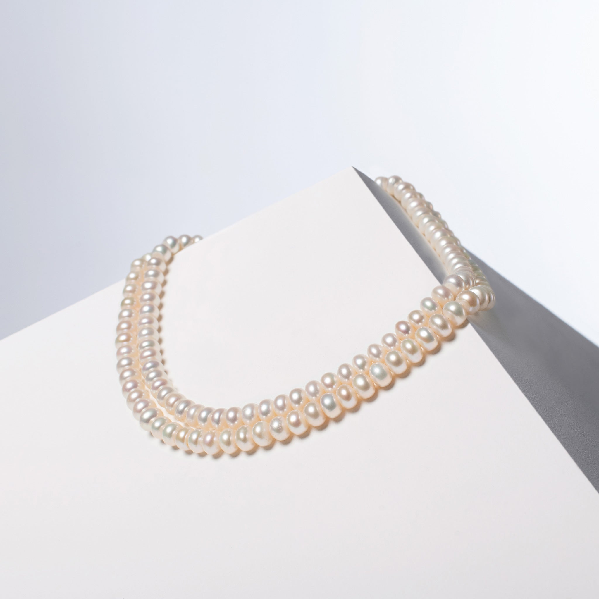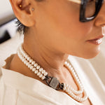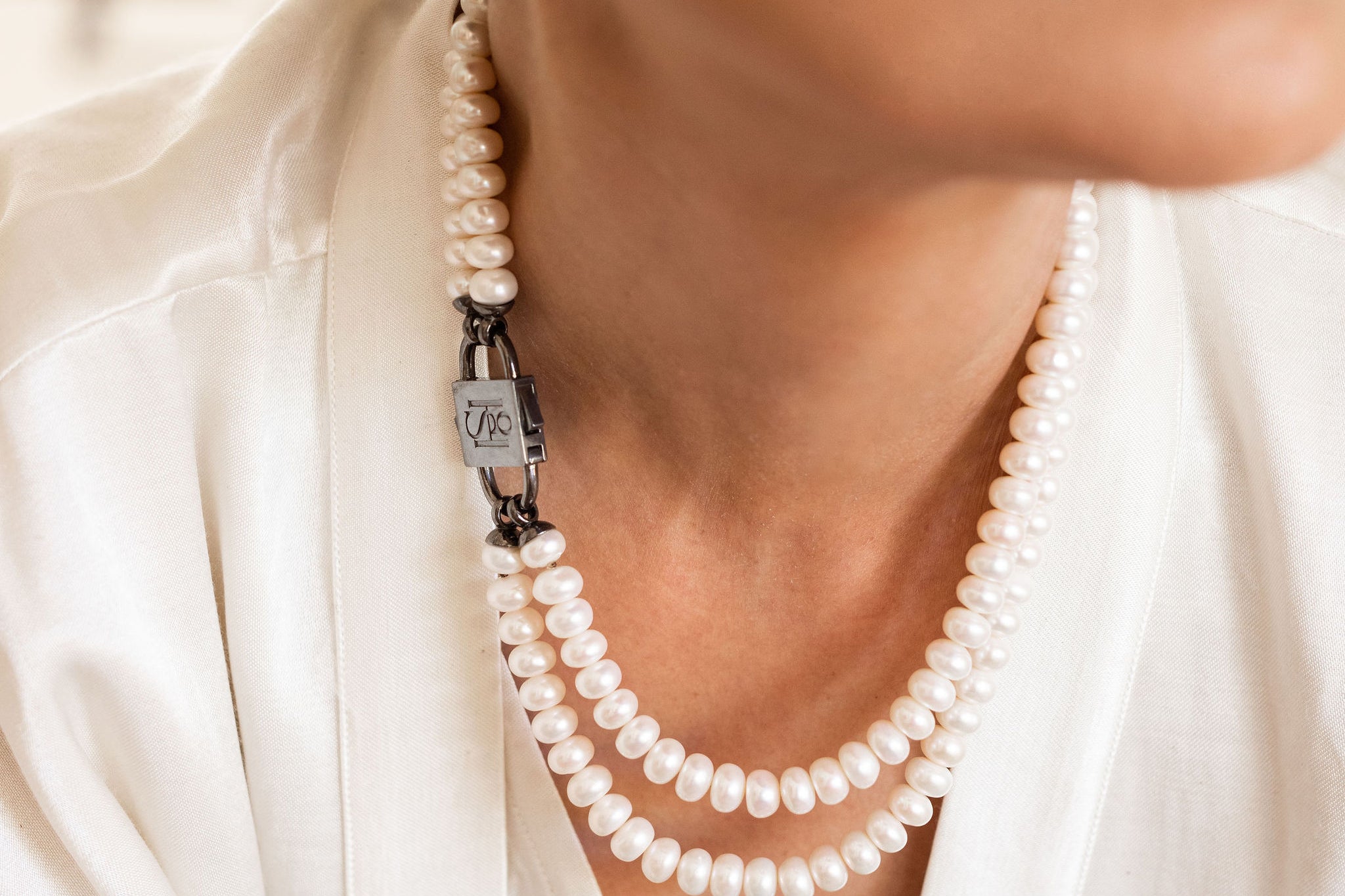 Leyla consists of two individual necklaces, each with natural, high luster pearls, and our unique HoS Lock™ in 1-micron rhodium-filled 925 sterling silver.