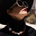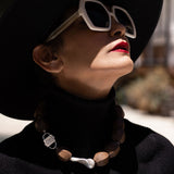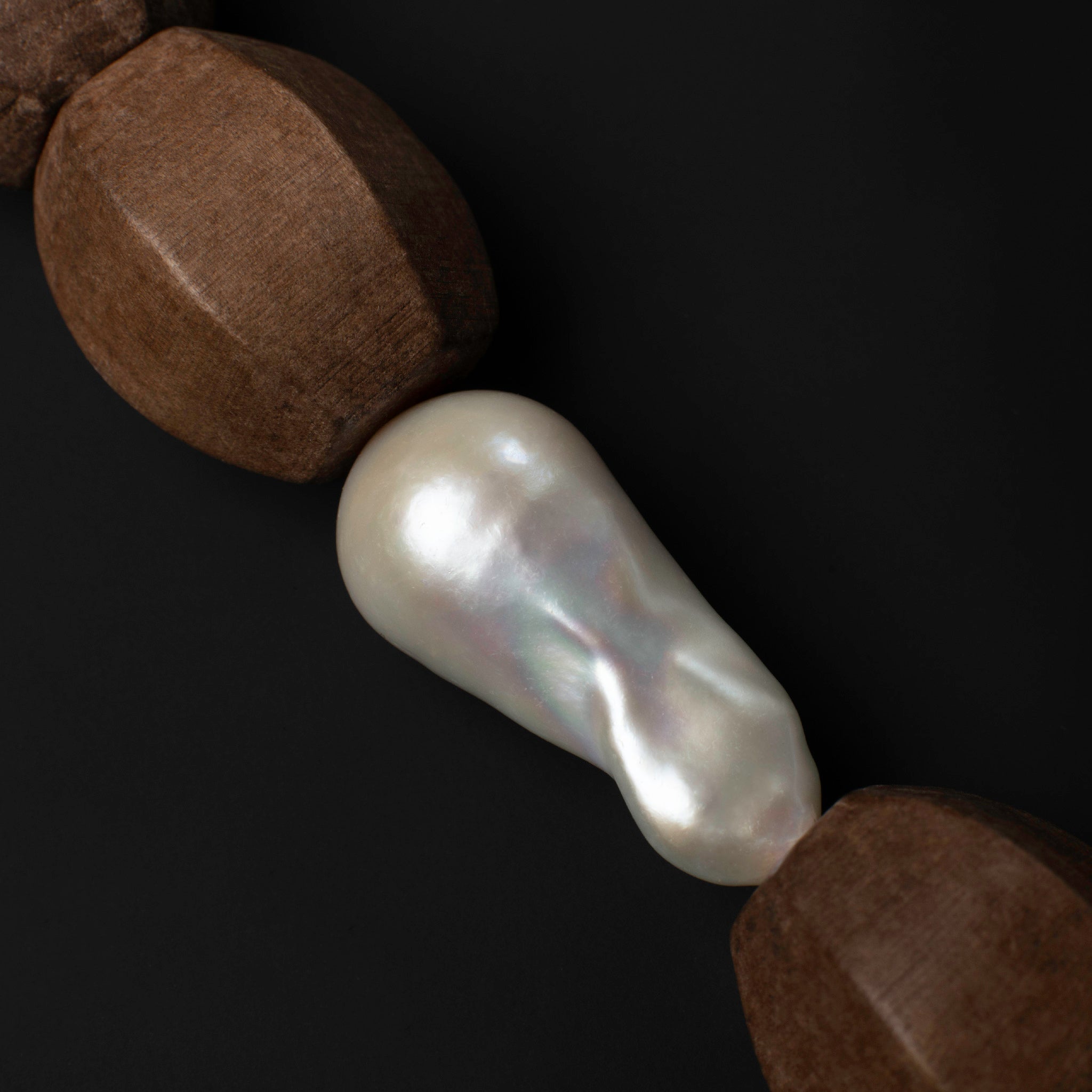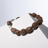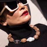 Light Walden is a combination of the highest quality giant fireball baroque pearl and natural light brown wood with 1-micron 24k white gold filled 925 sterling silver ornaments between them.