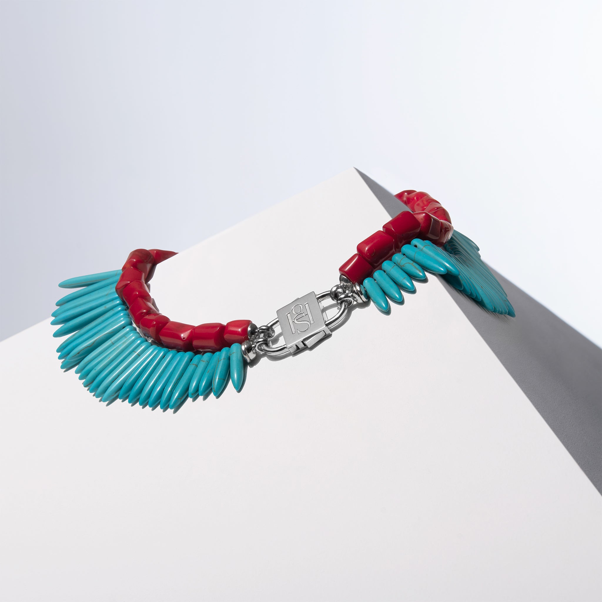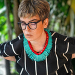 Red Merneith consists of two different necklaces; by buying this piece, you will have big Red corals and a Blue Howlite necklaces to play with their combination.